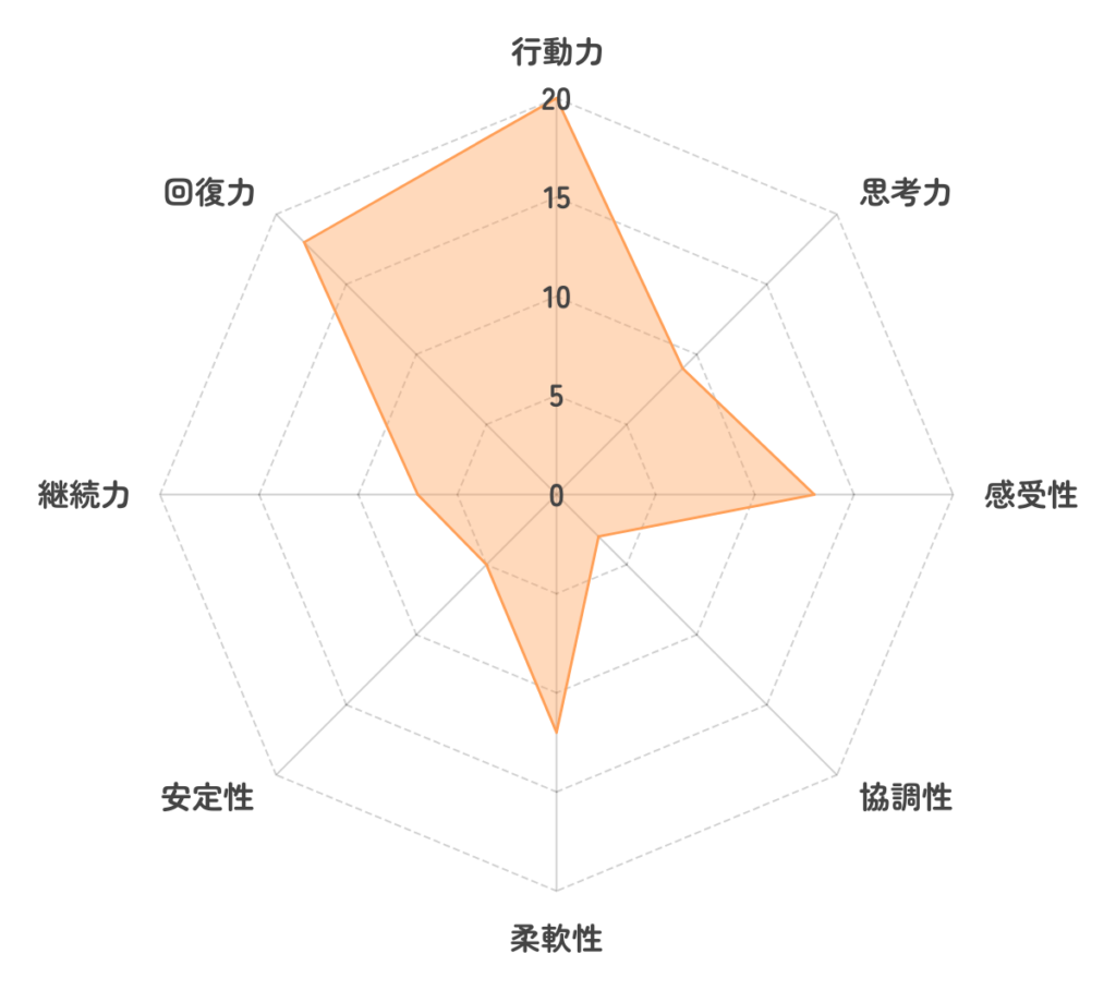 考える力はありますが、じっくり練るよりも即判断を選びやすいタイプです。